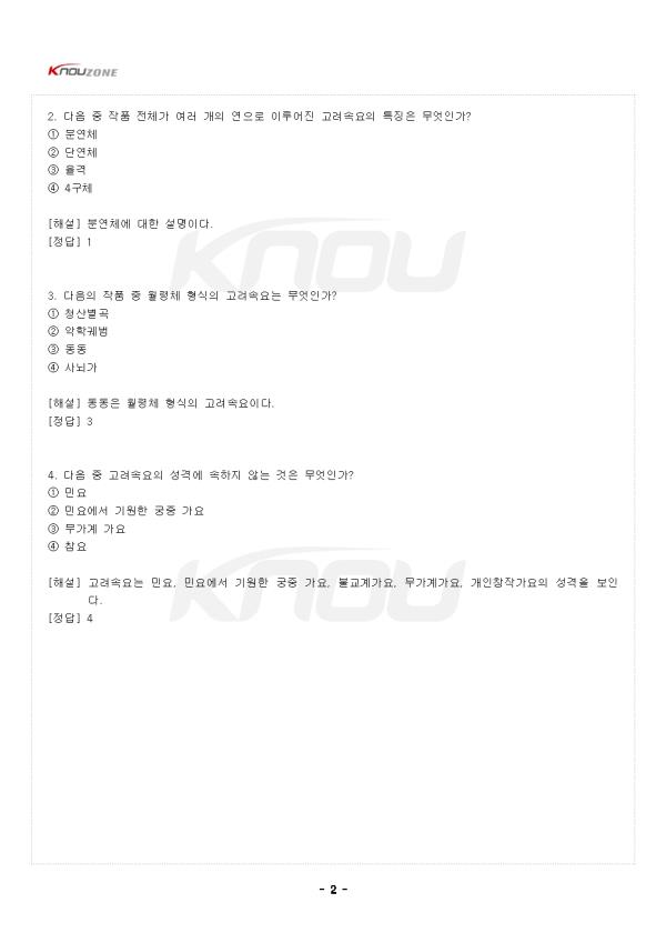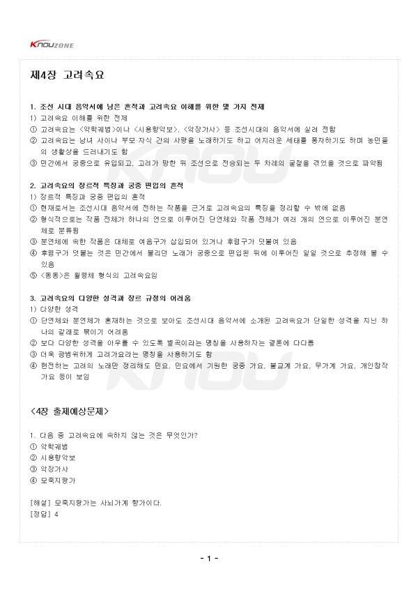 1. Á¶¼± ½Ã´ë À½¾Ç¼¿¡ ³²Àº ÈçÀû°ú °í·Á¼Ó¿ä ÀÌÇØ¸¦ À§ÇÑ ¸î °¡Áö ÀüÁ¦ 1) °í·Á¼Ó¿ä ÀÌÇØ¸¦ À§ÇÑ ÀüÁ¦ ¨ç °í·Á¼Ó¿ä´Â <¾ÇÇб˹ü>À̳ª <½Ã¿ëÇâ¾Çº¸>, <¾ÇÀå°¡»ç> µî Á¶¼±½Ã´ëÀÇ À½¾Ç¼¿¡ ½Ç·Á ÀüÇÔ ¨è °í·Á¼Ó¿ä´Â ³²³à »çÀ̳ª ºÎ¸ð¡¤ÀÚ½Ä °£ÀÇ »ç¶ûÀ» ³ë·¡Çϱ⵵ ÇÏ°í ¾îÁö·¯¿î ¼¼Å¸¦ dzÀÚÇϱ⵵ ÇÏ¸ç ³ó¹ÎµéÀÇ »ýȰ»óÀ» µå·¯³»±âµµ ÇÔ ¨é ¹Î°£¿¡¼ ±ÃÁßÀ¸·Î À¯ÀԵǰí, °í·Á°¡ ¸ÁÇÑ µÚ Á¶¼±À¸·Î Àü½ÂµÇ´Â µÎ Â÷·ÊÀÇ ±¼ÀýÀ» °Þ¾úÀ» °ÍÀ¸·Î ÆÄ¾ÇµÊ 2. °í·Á¼Ó¿äÀÇ À帣Àû Ư¡°ú ±ÃÁß ÆíÀÔÀÇ ÈçÀû 1) À帣Àû Ư¡°ú ±ÃÁß ÆíÀÔÀÇ ÈçÀû ¨ç ÇöÀç·Î¼´Â Á¶¼±½Ã´ë À½¾Ç¼¿¡ ÀüÇÏ´Â ÀÛǰÀ» ±Ù°Å·Î °í·Á¼Ó¿äÀÇ Æ¯Â¡À» Á¤¸®ÇÒ ¼ö ¹Û¿¡ ¾øÀ½ ¨è Çü½ÄÀûÀ¸·Î´Â ÀÛǰ Àüü°¡ ÇϳªÀÇ ¿¬À¸·Î ÀÌ·ç¾îÁø ´Ü¿¬Ã¼¿Í ÀÛǰ Àüü°¡ ¿©·¯ °³ÀÇ ¿¬À¸·Î ÀÌ·ç¾îÁø ºÐ¿¬Ã¼·Î ºÐ·ùµÊ ¨é ºÐ¿¬Ã¼¿¡ ¼ÓÇÑ ÀÛǰÀº ´ëü·Î ¿©À½±¸°¡ »ðÀԵǾî Àְųª Èķű¸°¡ µ¡ºÙ¿© ÀÖÀ½ ¨ê Èķű¸°¡ µ¡ºÙ´Â °ÍÀº ¹Î°£¿¡¼ ºÒ¸®´ø ³ë·¡°¡ ±ÃÁßÀ¸·Î ÆíÀÔµÈ µÚ¿¡ ÀÌ·ç¾îÁø ÀÏÀÏ °ÍÀ¸·Î ÃßÁ¤ÇØ º¼ ¼ö ÀÖÀ½ ¨ë <µ¿µ¿>Àº ¿ù·Éü Çü½ÄÀÇ °í·Á¼Ó¿äÀÓ 3. °í·Á¼Ó¿äÀÇ ´Ù¾çÇÑ ¼º°Ý°ú À帣 ±ÔÁ¤ÀÇ ¾î·Á¿ò 1) ´Ù¾çÇÑ ¼º°Ý ¨ç ´Ü¿¬Ã¼¿Í ºÐ¿¬Ã¼°¡ È¥ÀçÇÏ´Â °ÍÀ¸·Î º¸¾Æµµ Á¶¼±½Ã´ë À½¾Ç¼¿¡ ¼Ò°³µÈ °í·Á¼Ó¿ä°¡ ´ÜÀÏÇÑ ¼º°ÝÀ» Áö´Ñ ÇϳªÀÇ °¥·¡·Î ¹À̱⠾î·Á¿ò ¨è º¸´Ù ´Ù¾çÇÑ ¼º°ÝÀ» ¾Æ¿ì¸¦ ¼ö ÀÖµµ·Ï º°°îÀ̶ó´Â ¸íĪÀ» »ç¿ëÇÏÀÚ´Â °á·Ð¿¡ ´Ù´Ù¸§ ¨é ´õ¿í ±¤¹üÀ§ÇÏ°Ô °í·Á°¡¿ä¶ó´Â ¸íĪÀ» »ç¿ëÇϱ⵵ ÇÔ ¨ê ÇöÀüÇÏ´Â °í·ÁÀÇ ³ë·¡¸¸ Á¤¸®Çصµ ¹Î¿ä, ¹Î¿ä¿¡¼ ±â¿øÇÑ ±ÃÁß °¡¿ä, ºÒ±³°è °¡¿ä, ¹«°¡°è °¡¿ä, °³ÀÎâÀÛ°¡¿ä µîÀÌ º¸ÀÓ <4Àå ÃâÁ¦¿¹»ó¹®Á¦> 1. ´ÙÀ½ Áß °í·Á¼Ó¿ä¿¡ ¼ÓÇÏÁö ¾Ê´Â °ÍÀº ¹«¾ùÀΰ¡? ¨ç ¾ÇÇб˹ü ¨è ½Ã¿ëÇâ¾Çº¸ ¨é ¾ÇÀå°¡»ç ¨ê ¸ðÁ×Áö¶û°¡ [ÇØ¼³] ¸ðÁ×Áö¶û°¡´Â »ç³ú°¡°è Çâ°¡ÀÌ´Ù. [Á¤´ä] 4 - Áß·« - |