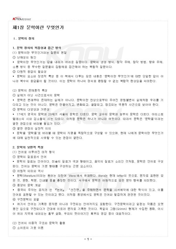 ¥°. ¹®ÇÐÀÇ Á¤ÀÇ 1. ¹®ÇÐ Á¤ÀÇÀÇ º¹À⼺°ú Á¢±Ù ¹æ½Ä (1) ¹®ÇÐÀ̶õ ¹«¾ùÀΰ¡¶ó´Â Áú¹®ÀÇ º»Áú ¨ç ³ÇؼºÀÇ ¿øÀÎ • ¹®ÇÐÀ̶õ ¹«¾ùÀΰ¡´Â ´äÀ» ³»¸®±â ¾î·Á¿î Áú¹®ÀÌ´Ù. ¹®ÇÐÀÇ »ý¼º ¹æ½Ä, âÀÛ ÁÖü, âÀÛ ¹æ¹ý, ÇâÀ¯ ÁÖü, ¼ÒÅë ¹æ½Ä µî ¹«¼öÇÑ Áú¹®µéÀÇ ÁýÇÕü·Î Á¢±ÙÇØ¾ß ÇÏ´Â º¹ÇÕÀû Áú¹®ÀÌ´Ù. ¨è ´Ù¿øÀû ÀÀ´äÀÇ Çʿ伺 • ¹®ÇÐÀÇ ¿ä¼Ò¿Í À帣Àû Ư¼º µî ÀÌ Ã¥¿¡¼ ´Ù·ç´Â ¸ðµç ³»¿ëÀº '¹®ÇÐÀ̶õ ¹«¾ùÀΰ¡'¿¡ ´ëÇÑ ´ÜÀÏÇÑ ´äÀÌ ¾Æ´Ï¶ó º¹¼öÀÇ ÀÀ´äµéÀÌ µÉ °ÍÀÌ´Ù. ÀÌ´Â ¹®ÇÐÀÌ ÇϳªÀÇ Á¤ÀǷΠȯ¿øµÉ ¼ö ¾ø´Â º¹ÇÕÀû Çö»óÀÓÀ» ÀǹÌÇÑ´Ù. (2) ¹®ÇÐÀÇ Á¸Àç·ÐÀû Ư¼º ¨ç ½Çü°¡ ¾Æ´Ñ »ç°ÇÀ¸·Î¼ÀÇ ¹®ÇÐ • ¹®ÇÐÀº º»·¡ºÎÅÍ Á¸ÀçÇÏ´Â ½Çü°¡ ¾Æ´Ï´Ù. ¹®ÇÐÀ̶õ õ»óÀ¸·ÎºÎÅÍ ÁÖ¾îÁø ¿µ¿øºÒº¯ÀÇ ½Çüó·³ ¿ì¸®¸¦ ±â´Ù¸®°í ÀÖ´Â °ÍÀÌ ¾Æ´Ï´Ù. ¹®ÇÐÀº ¸¸µé¾îÁö°í, º¯ÈµÇ°í, ±¼ÀýµÇ°í, âÁ¶µÇ´Â ¿ªµ¿Àû »ç°ÇÀ¸·Î º¸¾Æ¾ß ÇÑ´Ù. ¨è ¹®ÇÐÀÇ ´Ù¾ç¼º°ú °¡º¯¼º • 17¼¼±â ¿µ±¹ÀÇ ¹®Çаú 20¼¼±â ¼¿ïÀÇ ¹®ÇÐÀº ´Ù¸£´Ù. ¹®ÇÐ ±³¼öÀÇ ¹®Çаú ³óºÎÀÇ ¹®ÇÐÀº ´Ù¸£´Ù. ¾Æ¸®½ºÅäÅÚ·¹½ºÀÇ ½Ã¿Í ±è¼Ò¿ùÀÇ ½Ã´Â ´Ù¸£´Ù. ÀÌó·³ ¹®ÇÐÀº Çϳª°¡ ¾Æ´Ï¶ó ¿©·µÀÌ´Ù. µû¶ó¼ ¹®ÇÐÀº '¹®Çеé'À̶ó´Â ¿¸° °üÁ¡À¸·Î ¹Ù¶óº¼ Çʿ䰡 ÀÖ´Ù. ¨é ¿¸° °üÁ¡ÀÇ ½ÇõÀû ÀÇÀÇ • ¹®ÇÐÀ» '¹®Çеé'·Î ¹Ù¶óº¼ ¶§ ¹®ÇÐÀÇ ÁöÆòÀ» µ¶Ã¢ÀûÀ¸·Î ±¸¼ºÇÒ ¼ö ÀÖÀ¸¸ç, ÇöÀç ³ª¿¡°Ô ¹®ÇÐÀ̶õ ¹«¾ùÀΰ¡¿¡ ´ëÇØ ½ÇõÀûÀ¸·Î »çÀ¯ÇÒ ¼ö ÀÖ´Â °üÁ¡ÀÌ ¿¸°´Ù. 2. ¹®ÇÐÀÇ º¸ÆíÀû Ư¼º (1) ¾ð¾î·Î ÀÌ·ç¾îÁø ¹ÌÀû Çü½Ä ¨ç ¹®ÇÐÀÇ Áú·á·Î¼ ¾ð¾î • ¹®ÇÐÀÇ Áú·á´Â ¾ð¾îÀÌ´Ù. ¹Ì¼úÀÇ Áú·á°¡ »ö°ú ÇüÅÂÀ̰í, À½¾ÇÀÇ Áú·á°¡ ¼Ò¸®ÀÎ °Íó·³, ¹®ÇÐÀº ¾ð¾î·Î ±¸¼ºµÈ´Ù. ¾ð¾î´Â ¹®ÇÐÀÇ ±âº» ÇüŸ¦ ±¸¼ºÇÏ´Â ±Ùº» ¿ä¼ÒÀÌ´Ù. ¨è ¾î¿øÀû ÀÇ¹Ì¿Í ¿ª»ç • ¹®ÇÐ(literature)À̶ó´Â ¿ë¾î´Â ¶óƾ¾î 'litera'¿¡¼ À¯·¡Çß´Ù. litera´Â ÇöÀç letterÀÇ ¶æÀ¸·Î, ¹®ÀڷΠǥÇöµÈ ¸ðµç °Í, ¹®Çå, Çй®, Àμ⹰ µîÀ» ÃÑĪÇÑ °ÍÀÌ´Ù. ¼±¸¿¡¼ ¹®ÇÐÀº ¾î¿øÀûÀ¸·Î ¸ðµç ¹®ÀÚ ÇàÀ§¸¦ ÀǹÌÇß´Ù. ¨é µ¿¾çÀÇ ¹®ÇÐ °³³ä • Áß±¹ÀÇ ÁÖÀÚ´Â °øÀÚ°¡ ¾´ ¡º³í¾î¡» ¡¸¼±ÁøÆí¡¹À» ÁÖÇØÇÏ¸é¼ ¹®ÇÐÀ» ½Ã¼¿¹¾Ç¿¡ ´ëÇÑ ÇнÄÀÌ ÀÖ°í, À̸¦ ¾ð¾î·Î Ç¥ÇöÇÒ ¼ö ÀÖ´Â °ÍÀ̶ó°í Çß´Ù. ÀÌó·³ µ¿¾ç¿¡¼µµ ¹®ÇÐÀº ¾ð¾î¿Í ¹ÐÁ¢ÇÏ°Ô °ü·ÃµÈ °ÍÀ̾ú´Ù. ¨ê ±¸Àü¹®ÇÐÀÇ Æ÷°ý • ¿©±â¼ ¾ð¾î´Â ±â·ÏµÈ ¹®ÀÚ»Ó ¾Æ´Ï¶ó ±¸ÀüµÇ´Â ¾ð¾î±îÁöµµ Æ÷ÇÔÇÑ´Ù. ±¸Àü¹®ÇÐÀ̶ó°í ÀÏÄ´ ÀÛǰÀº ¿À·§µ¿¾È ÀÔÀ¸·Î ±¸ÀüµÇ´Ù°¡ ±Ù´ë¿¡ À̸£·¯ ¹®ÀÚ·Î ±â·ÏµÈ °ÍÀÌ´Ù. µ¶ÀÏÀÇ ±×¸²(Grimm) ÇüÁ¦°¡ ¼öÁýÇÑ µ¿È, ¾Æ½Ã¾Æ ¿©·¯ Áö¿ª¿¡ ³»·Á¿À´Â ÈïºÎ ¼³È, ¿ì¸®ÀÇ ¿¾À̾߱âÀΠȤºÎ¸® ¿µ°¨ µîÀÌ ´ëÇ¥ÀûÀÌ´Ù. (2) ¾ð¾îÀÇ ÀÌÁßÀû ±¸Á¶¿Í ¹®ÇÐÀû Ȱ¿ë ¨ç ¼Ò½¬¸£ÀÇ ±âÈ£ ÀÌ·Ð • ¾ð¾îÇÐÀÚ Æä¸£µð³¶ µå ¼Ò½¬¸£¿¡ µû¸£¸é ¾ð¾î´Â ±âÀÇ(ÑÀ)¿Í ±âÇ¥(ÑÀøú)ÀÇ ±¸Á¶·Î µÇ¾î ÀÖ´Ù. ÀüÀÚ°¡ ¾ð¾îÀÇ Àǹ̳ª °³³ä¿¡ ÇØ´çÇÑ´Ù¸é, ÈÄÀÚ´Â ¾ð¾îÀÇ ¼Ò¸®³ª ¹«ÀǹÌÇÑ Ãø¸éÀ» ¶æÇÑ´Ù. ¨è ±âÈ£ÀÇ ÀÚÀǼº • ±âÀÇ¿Í ±âÇ¥ÀÇ °ü°è´Â ÇÊ¿¬ÀûÀÌÁö ¾Ê°í ÀÚÀÇÀûÀÌ´Ù. ¿ì¸®¸» '³ª¹«'´Â ¿µ¾î·Î 'tree', Áß±¹¾î·Î '树', ÇÁ¶û½º¾î·Î 'arbre'ÀÎ °Íó·³ ÀÇ¹Ì¿Í ¼Ò¸®´Â ´Ù¾çÇÑ ¹æ½ÄÀ¸·Î Á¸ÀçÇÑ´Ù. ÀÌó·³ ¹®ÇÐÀº ¾ð¾îÀÇ ÀÌÁßÀû Ãø¸é°ú ´Ù¾ç¼ºÀ» Ȱ¿ëÇÑ´Ù. ¨é ¹«ÀǹÌÀÇ ÀÇ¹Ì - ±èÃá¼öÀÇ ¡¸Ã³¿ë´ÜÀ塹 • ±èÃá¼öÀÇ ½Ã ¡¸Ã³¿ë´ÜÀ塹¿¡´Â "»ç¹Ù´Ù´Â »ç¹Ù´Ù, ¸ß½ÃÄÚ´Â ¾îµðÀִ°¡/»ç¹Ù´ÙÀÇ ´©ÀÌ´Â ¾îµðÀִ°¡"¶ó´Â ±¸ÀýÀÌ ÀÖ´Ù. ÀÌ ±¸ÀýÀº ¾ð¾îÀÇ ÀÇ¹Ì¿Í ¹«ÀǹÌÀÇ Æ¯¼ºÀ» ½ÇÇèÇϰí ÀÖ´Ù. ¾î¶² ¸Æ¶ôµµ ¾øÀÌ »ç¹Ù´Ù´Â »ç¹Ù´Ù, »ç¹Ù´ÙÀÇ ´©ÀÌ, ¸ß½ÃÄÚ¶ó´Â ½Ã¾î°¡ µîÀåÇÑ´Ù. ƯÈ÷ »ç¹Ù´Ù´Â ¾Æ¹« ¶æµµ Áö´ÏÁö ¾ÊÀº ¼Ò¸® À̹ÌÁöÀÌ´Ù. ¨ê ¹«ÀǹÌÀÇ È¿°ú • ¡ºÃ»»êº°°î¡»ÀÇ "¾â¸®¾â¸® ¾â¶ó¼º" ±¸Àý ¿ª½Ã ¹«ÀǹÌÇÑ ¼Ò¸®¸¦ Æ÷ÂøÇÑ °ÍÀÌ´Ù. ±×·³¿¡µµ ÀÌ ¼Ò¸®´Â À½¾ÇÀû È¿°ú¸¦ °ÈÇÏ¸é¼ °¨Á¤°ú ºÐÀ§±â¸¦ ¸¸µå´Â ÈûÀÌ ÀÖ´Ù. ¾ð¾î´Â ¹®ÇÐÀÇ Á¦1¿ä¼ÒÀ̹ǷΠ±× Ư¡À» ÀÌÇØÇÒ Çʿ䰡 ÀÖ´Ù. (3) Ç㱸ÀûÀÎ ¹ÌÀû ¼¼°èÀÇ ±¸¼º ¨ç Ç㱸ÀÇ º»Áú • ¹®ÇÐÀº ÀÛ°¡ÀÇ »ó»ó·Â¿¡ ÀÇÇØ ¾ð¾î¸¦ Áú·á·Î »ï¾Æ Ç㱸ÀûÀ¸·Î âÁ¶µÈ´Ù. ¿©±â¼ Ç㱸ÀÇ ¼¼°è´Â ¿ÏÀüÈ÷ Á¸ÀçÇÏÁö ¾Ê´Â ¼¼°è, °¡Â¥ ¼¼°è¸¦ ÀǹÌÇÏ´Â °ÍÀº ¾Æ´Ï´Ù. Çö½Ç ¼¼°è¿Í ±¸ºÐµÇÁö¸¸, ÀÛ°¡°