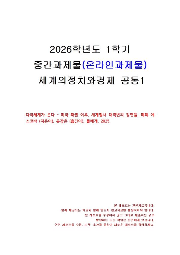 2026³â 1Çб⠼¼°èÀÇÁ¤Ä¡¿Í°æÁ¦ Áß°£½ÃÇè°úÁ¦¹° °øÅë1(´Ù±Ø¼¼°è°¡ ¿Â´Ù)