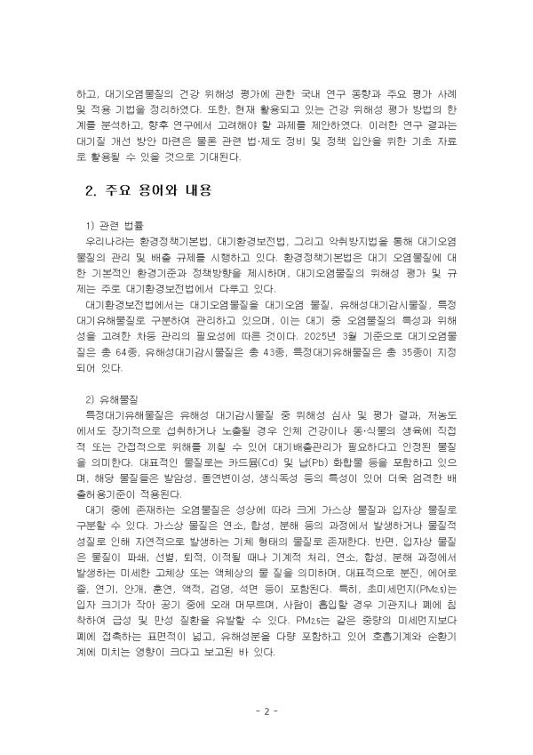 ƯÁ¤´ë±âÀ¯Çع°ÁúÀº À¯Çؼº ´ë±â°¨½Ã¹°Áú Áß À§Çؼº ½É»ç ¹× Æò°¡ °á°ú, Àú³óµµ¿¡¼­µµ Àå±âÀûÀ¸·Î ¼·ÃëÇϰųª ³ëÃâµÉ °æ¿ì ÀÎü °Ç°­À̳ª µ¿¡¤½Ä¹°ÀÇ »ýÀ°¿¡ Á÷Á¢Àû ¶Ç´Â °£Á¢ÀûÀ¸·Î À§Çظ¦ ³¢Ä¥ ¼ö ÀÖ¾î ´ë±â¹èÃâ°ü¸®°¡ ÇÊ¿äÇÏ´Ù°í ÀÎÁ¤µÈ ¹°ÁúÀ» ÀǹÌÇÑ´Ù. ´ëÇ¥ÀûÀÎ ¹°Áú·Î´Â Ä«µå¹Å(Cd) ¹× ³³(Pb) È­ÇÕ¹° µîÀ» Æ÷ÇÔÇϰí ÀÖÀ¸¸ç, ÇØ´ç ¹°ÁúµéÀº ¹ß¾Ï¼º, µ¹¿¬º¯À̼º, »ý½Äµ¶¼º µîÀÇ Æ¯¼ºÀÌ ÀÖ¾î ´õ¿í ¾ö°ÝÇÑ ¹èÃâÇã¿ë±âÁØÀÌ Àû¿ëµÈ´Ù.