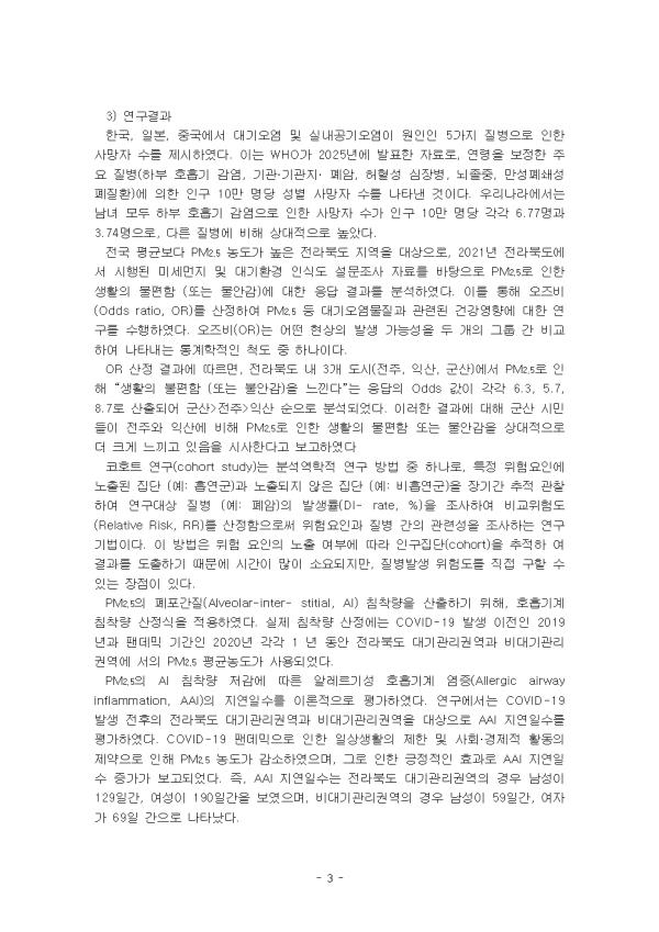 ´ë±â¿À¿°°ú ½Ç³»°ø±â¿À¿°Àº È£Èí±âÁúȯÀ» À¯¹ßÇϰųª ±× Áõ»óÀ» ¾ÇÈ­½Ã۸ç, ƯÈ÷ ¿µÀ¯¾Æ ¹× °í·ÉÀÚÀÇ ÁÖ¿ä »ç¸Á ¿øÀÎÀ¸·Î ÀÛ¿ëÇÑ´Ù. Àü ¼¼°èÀûÀ¸·Î ¸Å³â ¾à 700¸¸ ¸íÀÌ ´ë±â¿À¿°À¸·Î »ç¸ÁÇϸç, Àü ¼¼°è Àα¸ÀÇ 90% ÀÌ»óÀÌ ¿À¿°µÈ °ø±â¸¦ È£ÈíÇϰí ÀÖ´Ù°í º¸°íÇÏ¿´´Ù. ¼¼°èº¸°Ç±â±¸(WHO)¿¡ µû¸£¸é, µµ½Ã¸¦ µÚµ¤´Â ½º¸ð±×ºÎÅÍ ½Ç³» Èí¿¬±îÁö ´ë±â¿À¿°Àº Àü ¼¼°èÀÎÀÇ °Ç°­¿¡ ½É°¢ÇÑ À§ÇùÀÌ µÇ°í ÀÖÀ¸¸ç, Àü ¼¼°è Àα¸ 10¸í Áß 9¸íÀÌ ´ë±â¿À¿°¹°Áú¿¡ ³ëÃâµÇ¾î ½ÉÀåÁúȯ, ³úÁ¹Áß, ¸¸¼ºÆó¼â¼ºÆóÁúȯ(COPD), ¾Ï, Æó·Å µîÀÇ Áúº´ À§ÇèÀÌ Áõ°¡Çϰí ÀÖ´Ù. PM2.5´Â ÁÖ¿ä ´ë±â¿À¿°¹°Áú Áß Çϳª·Î, ´ë±â Áß¿¡ ºÎÀ¯ÇÏ´Â ÀÔÀÚ»ó ¹°Áú Áß ±× Å©±â°¡ 2.5 ¥ìm ÀÌÇÏÀÎ ¹Ì¼¼ÀÔÀÚ¸¦ ÀǹÌÇÑ´Ù. ÃÖ±Ù ¼¼°èº¸°Ç±â±¸¿¡ µû¸£¸é, ´ë±â¿À¿°À¸·Î ÀÎÇØ Àü ¼¼°è¿¡¼­ ¸Å³â ¾à 409¸¸ ¸íÀÌ »ç¸ÁÇϸç, ÀÌ Áß »ó´ç¼ö°¡ °í³óµµ PM2.5 ³ëÃâ°ú °ü·ÃÀÌ ÀÖ´Â °ÍÀ¸·Î ³ªÅ¸³µ´Ù.